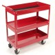 Verrijdbare open gereedschapswagen met drie open vakken.